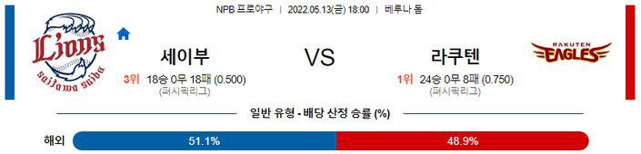 【NPB】 5월 13일 세이부 vs 라쿠텐