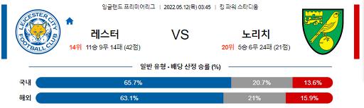 열람중 5월12일 03:45 레스터 노리치 EPL 2022.05.11 406