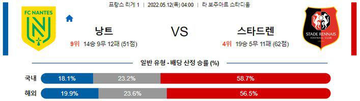 【리그앙】 5월 12일 낭트 vs 스타드 렌