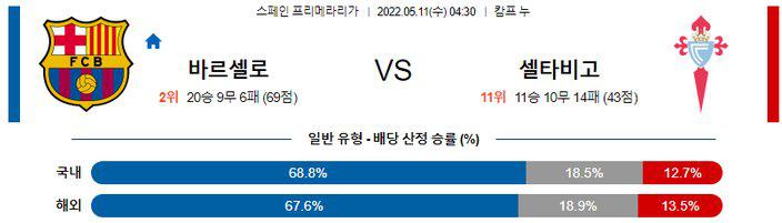 열람중 【Laliga】 5월11일 바르셀로나 vs 셀타 비고 2022.05.10 400