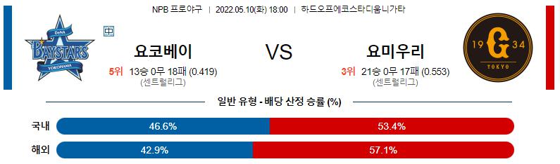 【NPB】 5월10일 요코하마 베이스타스 vs 요미우리 자이언츠요코하마(로메로 2승3패 5.60)