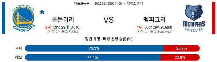 멤피스는 자 모란트가 3차전에 당한 부상으로 4차전 결장이 유력한 상황이다. 자 모란트의 공백은 멤피스 입장에서 치명타가 된다. 골든스테이트 승리 가능성을 추천 한다.