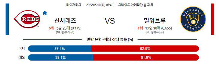 【MLB】 5월10일 신시내티 vs 밀워키