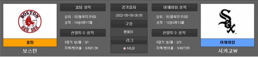 5월9일 00:35 MLB 보스턴 : 화이트삭스
