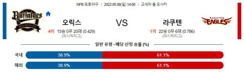 【NPB】 5월8일 오릭스 vs 라쿠텐