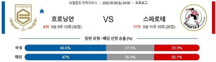 【에레디비시】 5월 8일 흐로닝언 vs 스파르타 로테르담