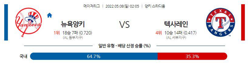 열람중 【MLB】 5월8일 뉴욕양키스 vs 텍사스 2022.05.08 540