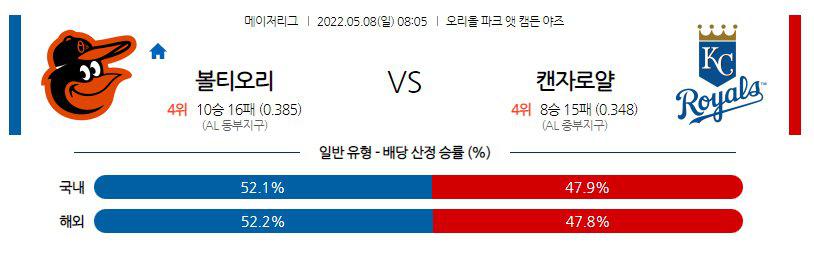 【MLB】 5월8일 볼티모어 vs 캔자스시티