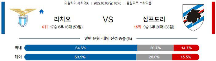 【세리에A】 5월 8일 라치오 vs 삼프도리아