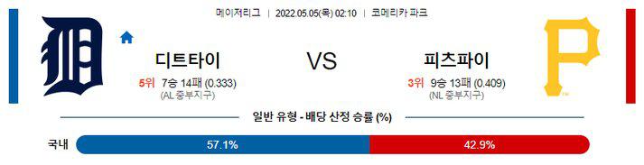 【MLB】 5월5일 디트로이트 vs 피츠버그