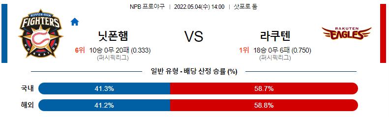 열람중 【NPB】 5월4일 니혼햄 파이터스 vs 라쿠텐 골든이글스 2022.05.04 502
