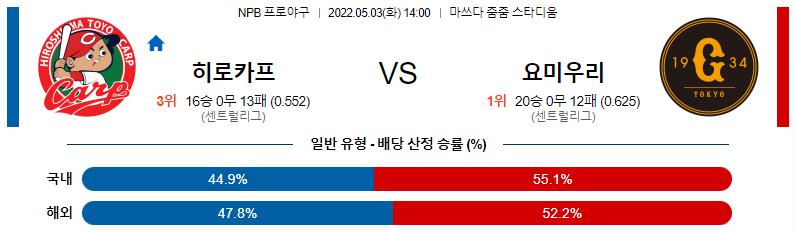 【NPB】 5월3일 히로시마 도요카프 vs 요미우리 자이언츠