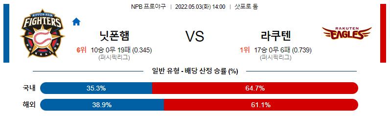 【NPB】 5월3일 니혼햄 파이터스 vs 라쿠텐 골든이글스