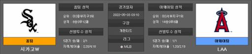 5월3일 MLB 시카고W : LA에인절스시카고화이트삭스의 선발투수는 우완 딜런 시스가 나선다.