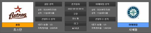 5월3일 MLB 휴스턴 : 시애틀휴스턴의 선발투수는 우완 제이크 오도리찌가 나선다.