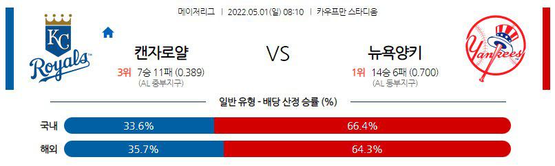【MLB】 5월1일 캔자스시티 vs 뉴욕양키스