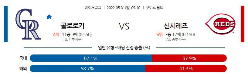 【MLB】 5월1일 콜로라도 vs 신시내티