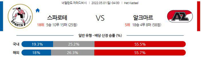 【에레디비시】 5월 1일 스파르타 vs AZ 알크마르