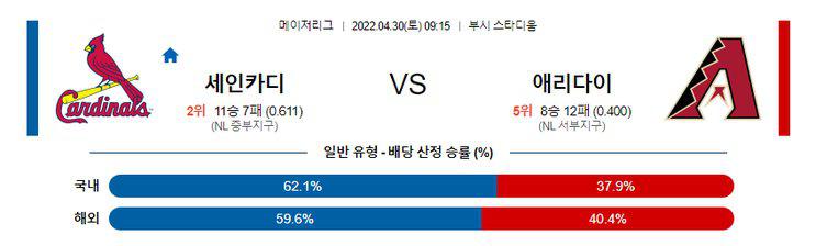 【MLB】 4월30일 세인트루이스 vs 애리조나