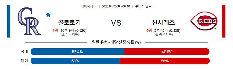 【MLB】 4월30일 콜로라도 vs 신시내티