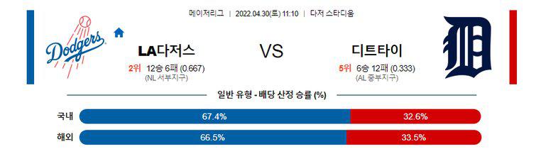 【MLB】 4월30일 LA다저스 vs 디트로이트