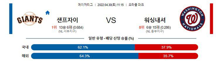 【MLB】 4월30일 샌프란시스코 vs 워싱턴