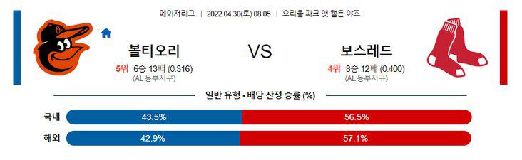 【MLB】 4월30일 볼티모어 vs 보스턴