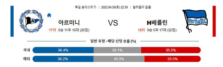 열람중 【분데스리가】 4월30일 빌레펠트 vs 헤르타베를린 2022.04.30 391