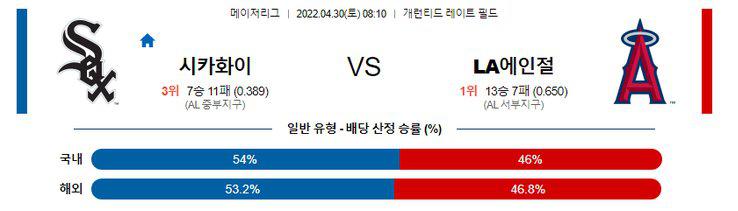 【MLB】 4월30일 화이트삭스 vs LA에인절스