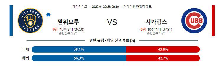 【MLB】 4월30일 밀워키 vs 시카고컵스