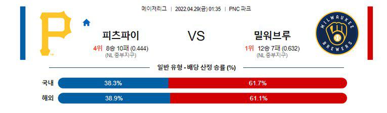 【MLB】 4월29일 피츠버그 vs 밀워키
