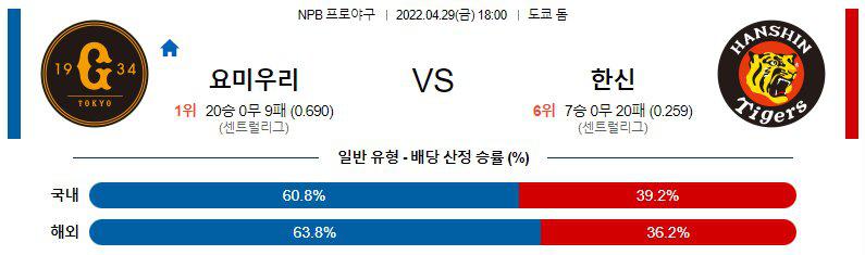 【NPB】 4월 29일 요미우리 vs 한신