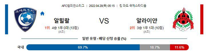 열람중 【AFCCL】 4월28일 알힐랄 vs 알라이얀 2022.04.27 463