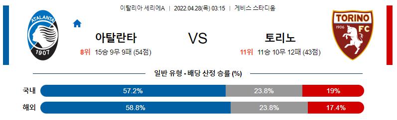 열람중 【세리에A】 4월28일 ACF 아탈란타 BC vs 토리노 FC 칼초 2022.04.27 502