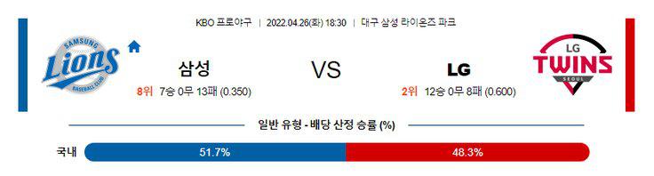 열람중 4월26일 KBO 삼성라이온즈 : LG트윈스 2022.04.26 370