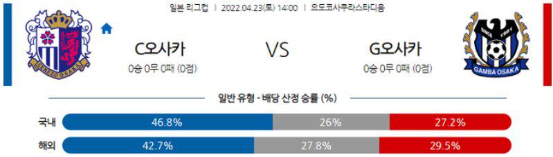 【J리그】 4월 23일 세레소 오사카 vs 감바 오사카