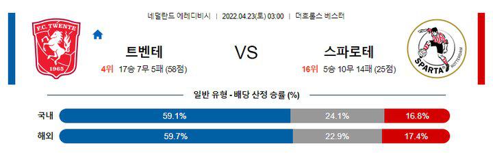 【에레디비시】 4월 23일 트벤테 vs 스파르타 로테르담
