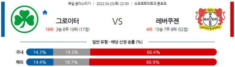 [분데스리가] 4월 23일 SpVgg 그로이터 vs 레버쿠젠