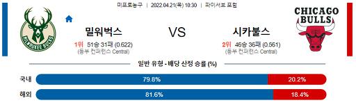 4월 21일 10:30 NBA분석 밀워키 : 시카고