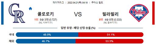 4월 21일 04:10 MLB 콜로라도 : 필라델피아