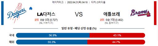 4월 21일 04:10 MLB LA다저스 : 애틀랜타