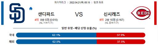 4월 21일 05:10 MLB 샌디에이고 : 신시내티