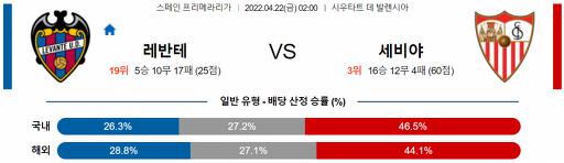 프리메라리가 4월 22일 02:00 레반테 UD : 세비야 FC