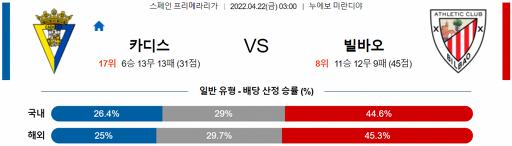 프리메라리가 4월 22일 03:00 카디스 CF : 아틀레틱 빌바오