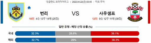 프리미어리그 4월 22일 03:45 번리 : 사우샘프턴