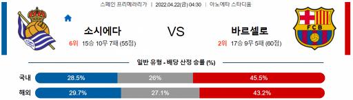프리메라리가 4월 22일 04:30 레알 소시에다드 : FC 바르셀로나