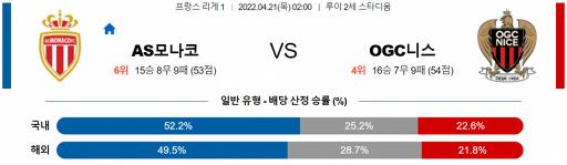 열람중 리그앙 4월 21일 02:00 AS 모나코 : OGC 니스 2022.04.20 501
