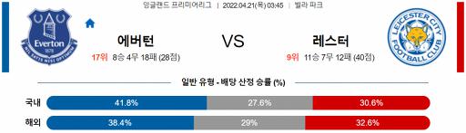 프리미어리그 4월 21일 03:45 에버턴 : 레스터 시티