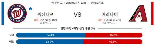 4월 21일 08:05 MLB 워싱턴 : 애리조나