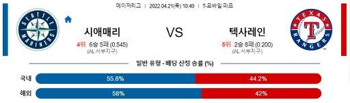 4월 21일 10:40 MLB 시애틀 : 텍사스